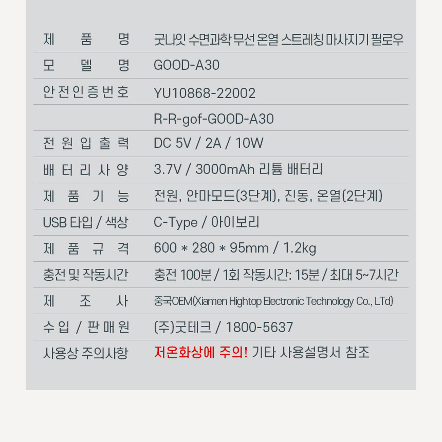 신수지 수면과학 베개 굿나잇 무선/온열 목/허리 스트레칭 마사지 필로우 GOOD-A30 24% 할인