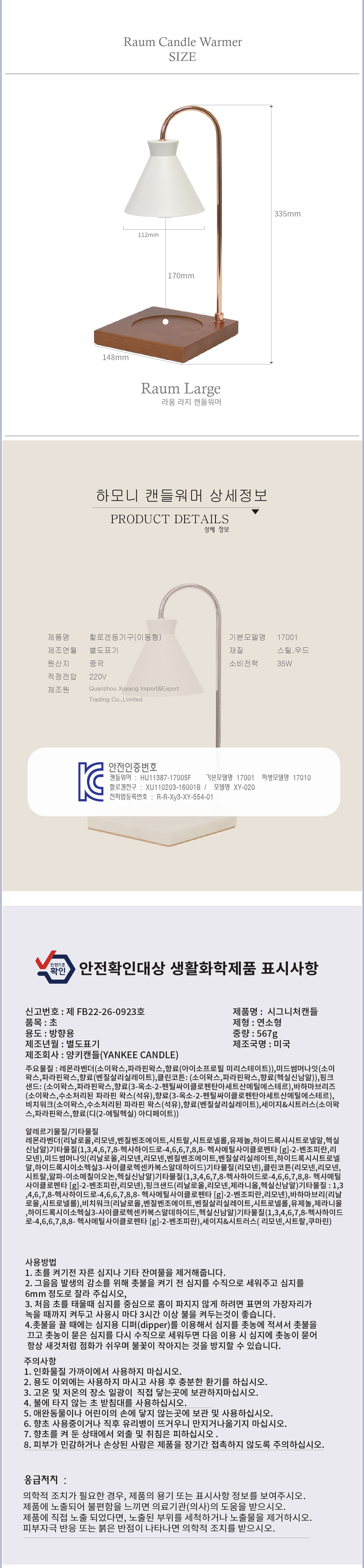 하모니캔들워머 라움 디머밝기조절 양키캔들라지자 선물세트3P